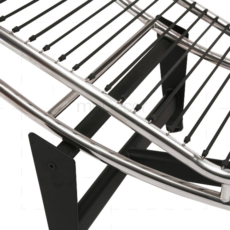 Das Gestell der kastanienbraunen Chaiselongue LC7 ist aus qualitätsvollem und lackiertem Edelstahl konstruiert. Mit weichem Anilinleder aus Italien bezogen, finden Sie auf ihr ein unvergleichlich hohes Maß an Komfort und Entspannung. Dazu trägt aber auch vor allem ihre ergonomische Linie bei, die den Bedürfnissen des Körpers exzellent entgegenkommt. Die Liege ist sowohl vom Wohlbefinden, als auch von ihrer gelungenen Ästhetik eine Klasse für sich.