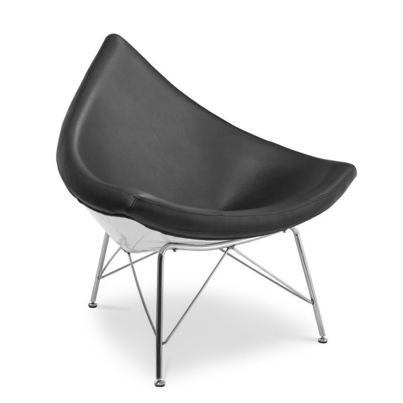 Der Coconut Chair wurde in den 50er Jahren vom einem US-Amerikaner Designer entworfen. Sein Design spiegelt den unverwechselbaren Zeitgeist dieses einzigartigen Jahrzehnts wider. Die stilisiert dargestellte Form einer Kokusnuss-Schale wurde aufwendig aus Fiberglas gefertigt und ist im Inneren angenehm weich gepolstert und mit schwarzem Leder bezogen. Ob in der Lobby oder in den eigenen vier Wänden - das einzigartige Sitzmöbel von Nelson bildet einen modernen und individuellen Blickfang in jeder Umgebung.