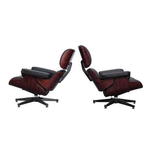 Sowohl Sessel als auch Hocker sind aus sorgfältig ausgewählten Materialien gefertigt. Das hochwertig verarbeitete Rosenholz und das edle italienische Anilinleder zeugen von höchster Qualität. Abschließend verbindet seine weiche Polsterung höchste Ansprüche mit einem hohen Mass an Komfort.